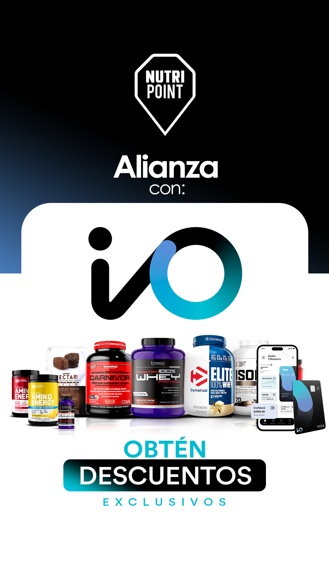 IO Requisitos: Andes Nutrition S.A.C. (RUC 20611677066) otorga dos descuentos: un 10% de descuento válido para productos seleccionados y un 15% de descuento válido exclusivamente para productos seleccionados de la categoría Aminoácidos, para compras realizadas en la página web (https://nutripoint.com.pe/) y al pagar con tarjetas IO (crédito o débito). El descuento se aplica automáticamente al momento de la compra usando el cupón "IO10" para el 10% o "IO15" para el 15%. Vigencia: Del 10/01/2026 al 30/12/2026 o hasta agotar el stock de 100 cupones por cada oferta. Restricciones: No aplica para la Gold Standard de 5LB en todos sus sabores. Las promociones no son acumulables con otras promociones, cupones, convenios, packs promocionales, liquidaciones o descuentos. Uso ilimitado por usuario durante la vigencia, sujeto a disponibilidad de stock global. La participación implica la aceptación total de los términos, y Andes Nutrition S.A.C. se reserva el derecho de modificar fechas, horarios o condiciones sin previo aviso. Los datos personales serán utilizados exclusivamente para fines de la promoción, conforme a la Ley N° 29733 (Protección de Datos Personales).
