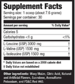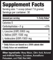 Es una fórmula en polvo que aporta una alta concentración de aminoácidos esenciales de cadena ramificada (BCAA) en la proporción clásica 2:1:1 de leucina, isoleucina y valina. Esta combinación es reconocida por apoyar la síntesis de proteínas y favorecer la recuperación del deportista que entrena de manera intensa. No incluye otros ingredientes añadidos, lo que permite ofrecer más servicios por envase en comparación con otras presentaciones.