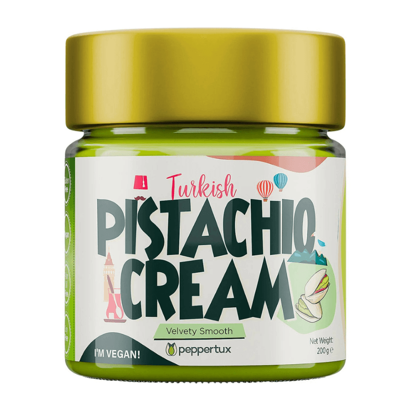 La única Crema de Pistacho Vegana del mundo, hecha con pistachos turcos DOP, 100% vegana y sin gluten, cremosa y con sabor auténtico, perfecta para untar y preparar postres.