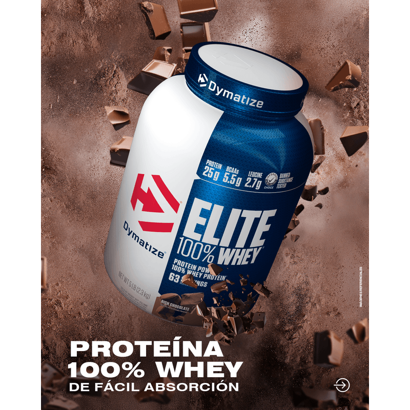 Elite Whey Rich 5 lb - Dymatize proteína de alta calidad que combina suero concentrado, aislado y péptidos para una liberación rápida y completa, favoreciendo la recuperación y el crecimiento muscular.