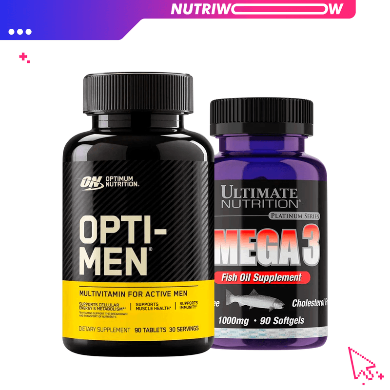 El Pack Opti-Men + Omega-3 combina dos de los suplementos esenciales para el bienestar masculino y el rendimiento físico diario.