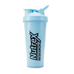 Shaker 28 Oz. 800ml aprox. de Nutrex, ideal para mezclar suplementos sin grumos. Diseño cómodo con tapa segura y boquilla antiderrame, resistente y libre de BPA, perfecto para entrenar y el uso diario.